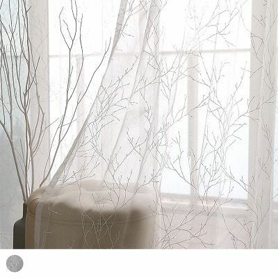 花柄 レースカーテン ホワイトインテリアをもっとお洒落に。白い枝木を描いた 幻想的なデザイン <カーモス> レビュー | パーフェクトスペースカーテン館