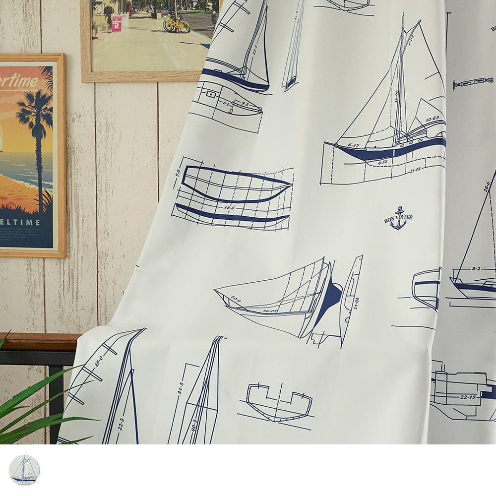 3級遮光カーテン 自分らしさを解き放つ、ヨット柄カーテン <セイルボート ホワイト> レビュー | パーフェクトスペースカーテン館