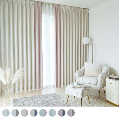 SNSでこういうバイカラーのカーテンを見かけてずっと探していました。バイカラーも可愛いし生地がつやつやで可愛い! -