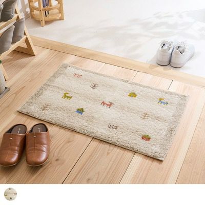 【最短・翌日出荷】玄関マット ギャッベのモチーフが散りばめられた、ナチュラルな風合いの日本製ウィルトン織マット<ラフ> レビュー | パーフェクトスペースカーテン館
