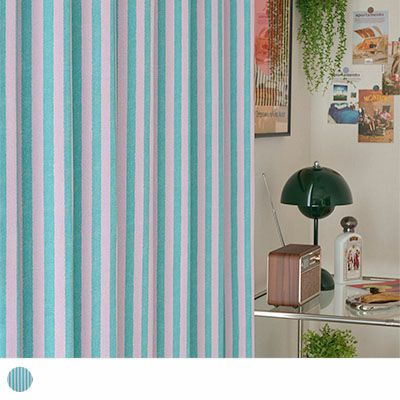 【入荷予定確認中】【最短・翌日出荷】2級遮光カーテン トレンドのくすみカラーでおしゃれに仕上げた韓国風ストライプカーテン <マーケット ピンク×グリーン> レビュー | パーフェクトスペースカーテン館
