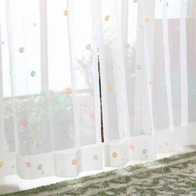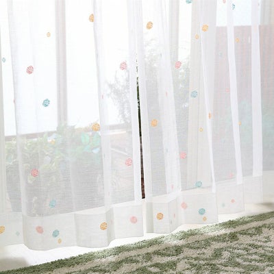 子供部屋のカーテンに使っています。水玉が揺れる感じがかわいいです。 娘がもう少し大きくなっても使えそうなデザインなので気に入っております。