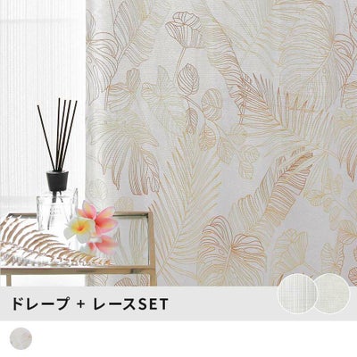 【3月上旬入荷予定】ハワイ セットカーテン モンステラとハワイアンリーフの上品な大人ハワイアンカーテンとレースセット<ゴールデンリーフセット> レビュー | パーフェクトスペースカーテン館