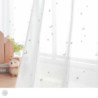 子供部屋 キラキラのお星さまとお月さまがかわいい刺繍レースカーテン <ララルー ホワイト> レビュー | パーフェクトスペースカーテン館
