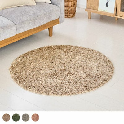 円形のシャギーラグがずっと欲しくて探していました。カーテン購入の機会に一緒にこちらのベージュを購入!無地なのに1枚敷くだけでおしゃれな雰囲気が出せます。今のところ毛も抜けないですし、困ったところはありません。 -