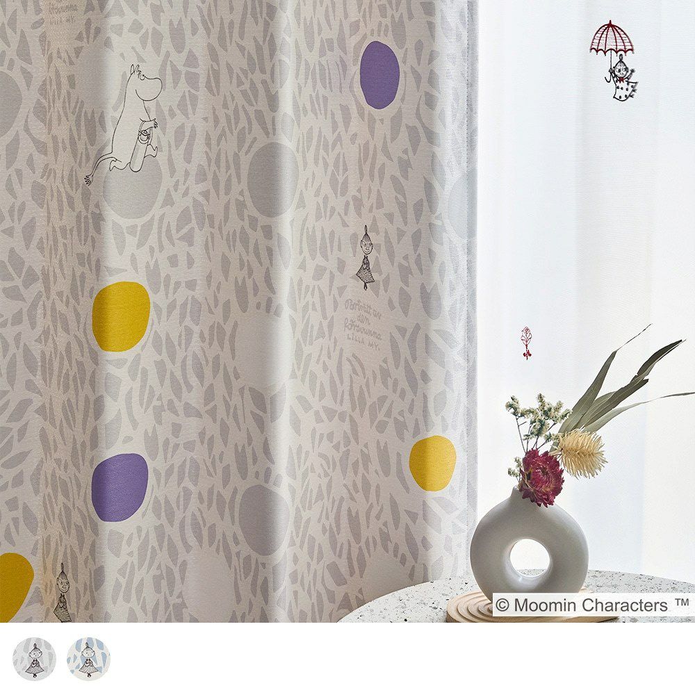 【ムーミン】2級遮光カーテン リズミカルなドット柄が可愛い!行方不明のミィを、ミルクを持ったムーミンが一生懸命探している様子を描いた2級遮光カーテン <カラーサークル> レビュー | パーフェクトスペースカーテン館