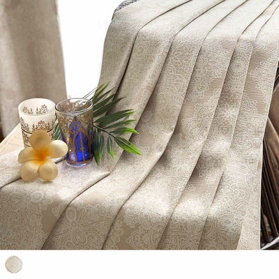 レースっぽい模様が可愛い。アラベスクっぽいデザインなので可愛くなりすぎないのもいい。機能性も高くて、優しい色合いで、遮光はするのに明るい雰囲気はあって買って良かったと思う。 -